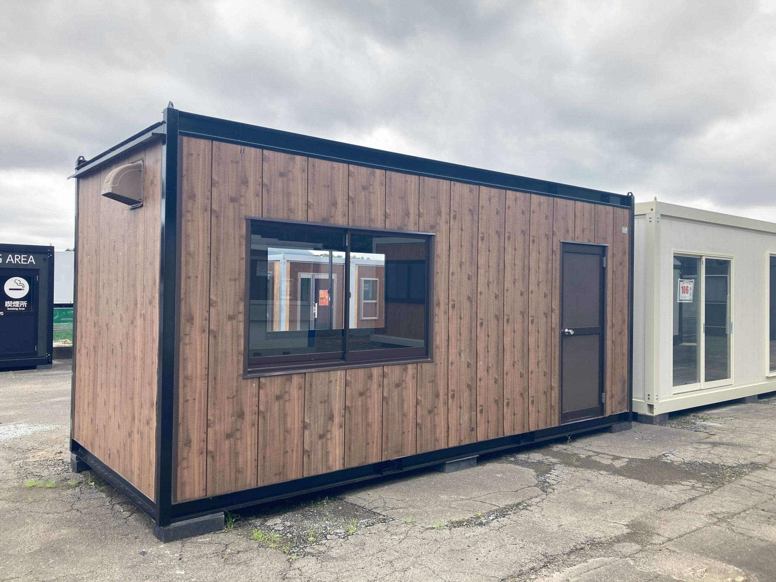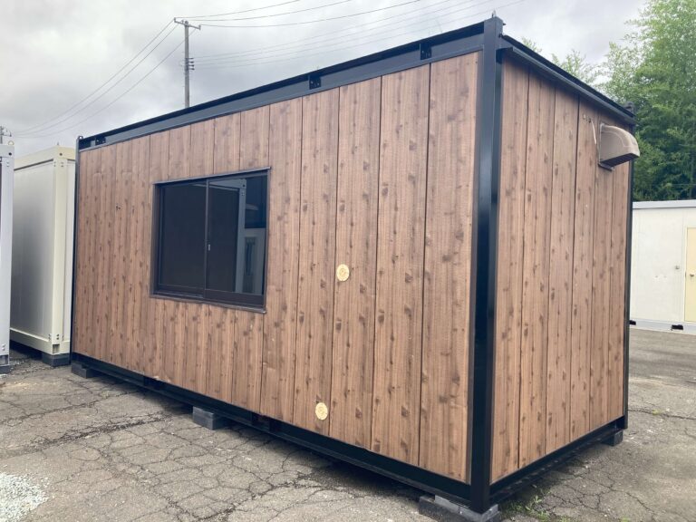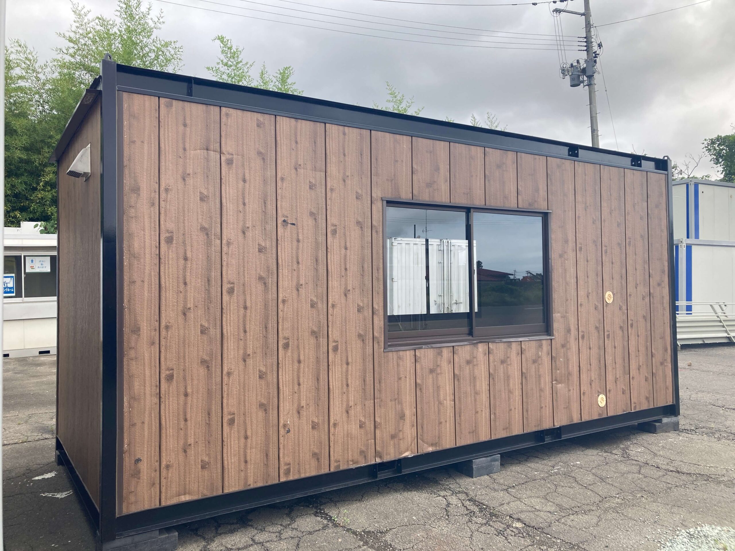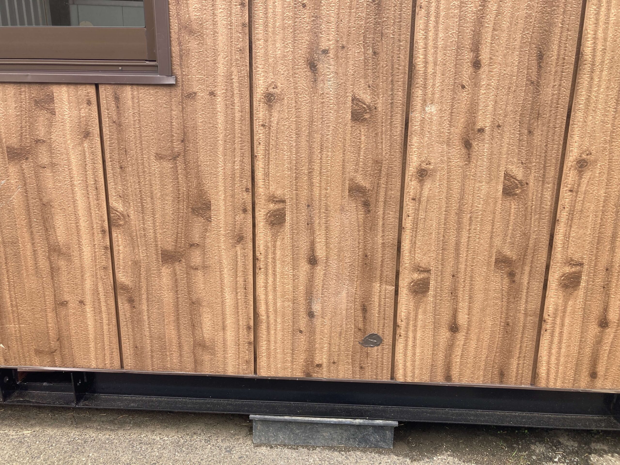 外壁は木目調サイディング、内壁は化粧べニア仕様で落ち着いた雰囲気です。