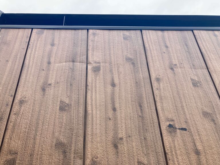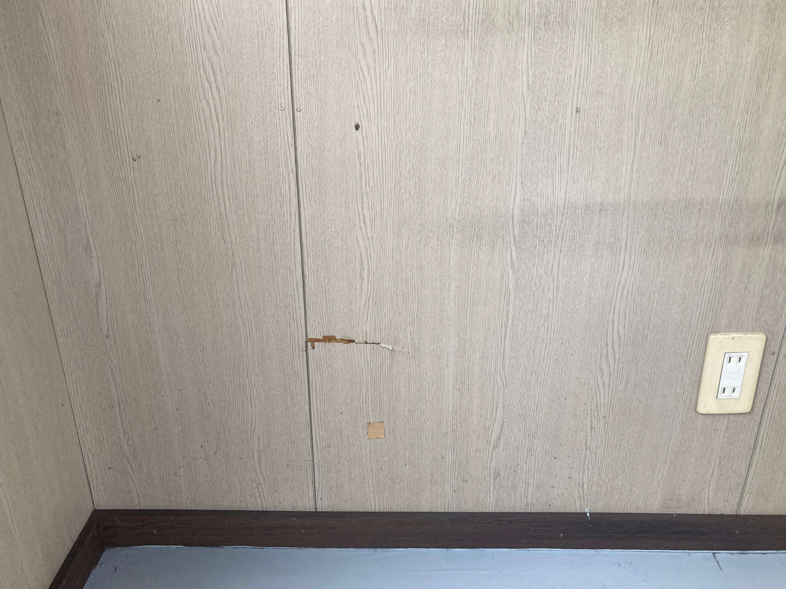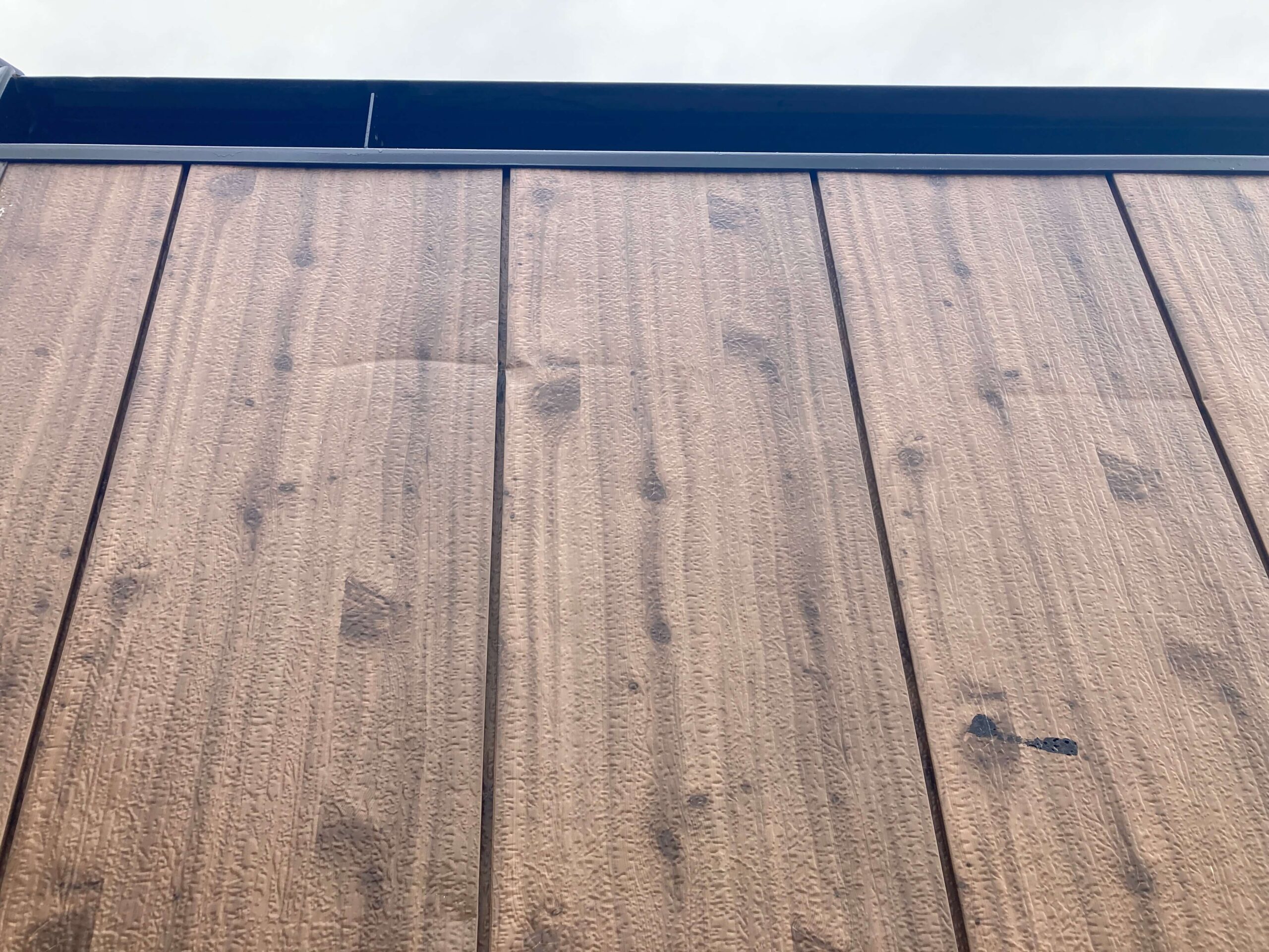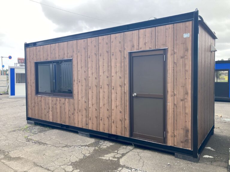 外壁は木目調サイディング、内壁は化粧べニア仕様で落ち着いた雰囲気です。