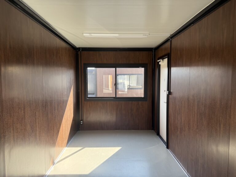 コンパクトながらも使い勝手の良い3.8坪サイズで、仮事務所や、休憩所、ショップブースなど幅広い用途に対応します。