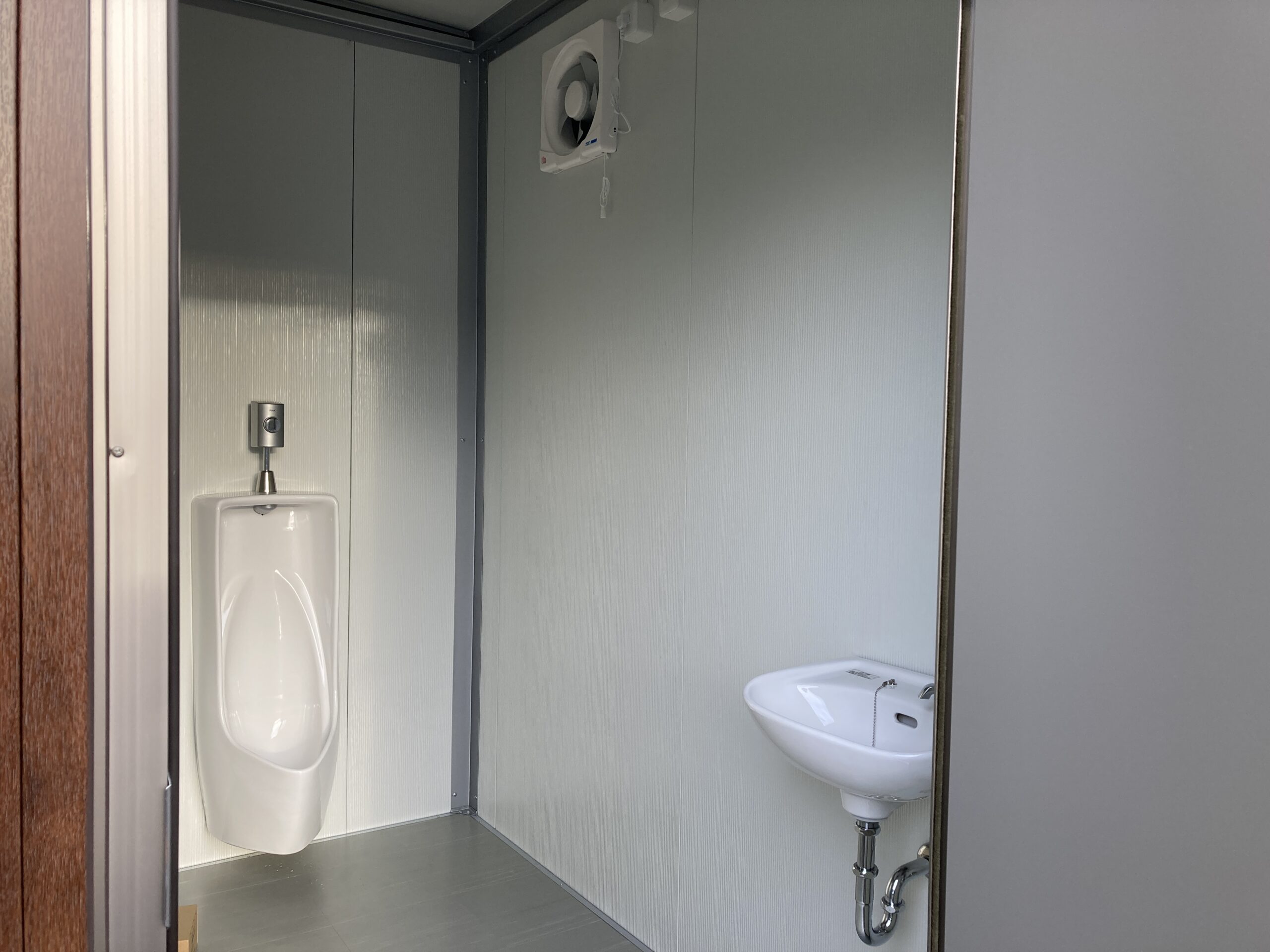 【洋式便器①・小便器①・手洗い①・換気扇①・道具入れ①】