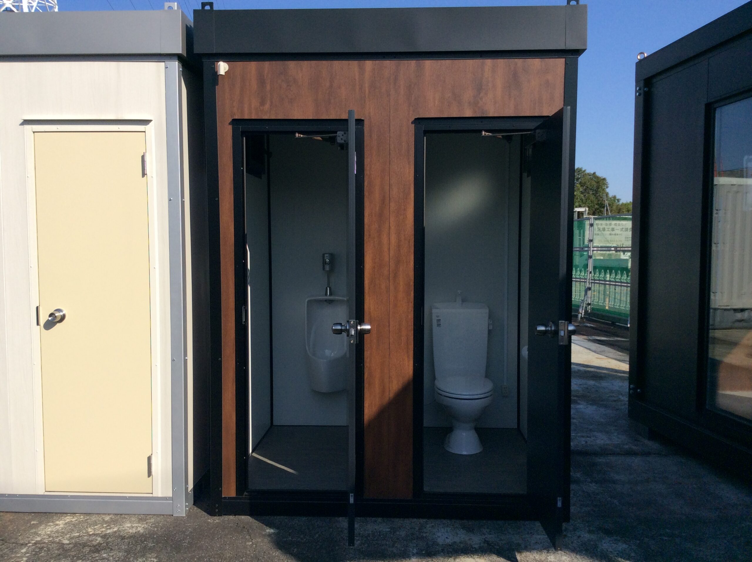 ブラックフレームに外壁はダークブラウンで落ち着いた雰囲気のトイレになっております。