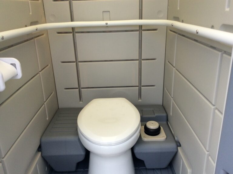 給水タンクに水を入れて、フットポンプで水を流す簡易水洗式のトイレです。