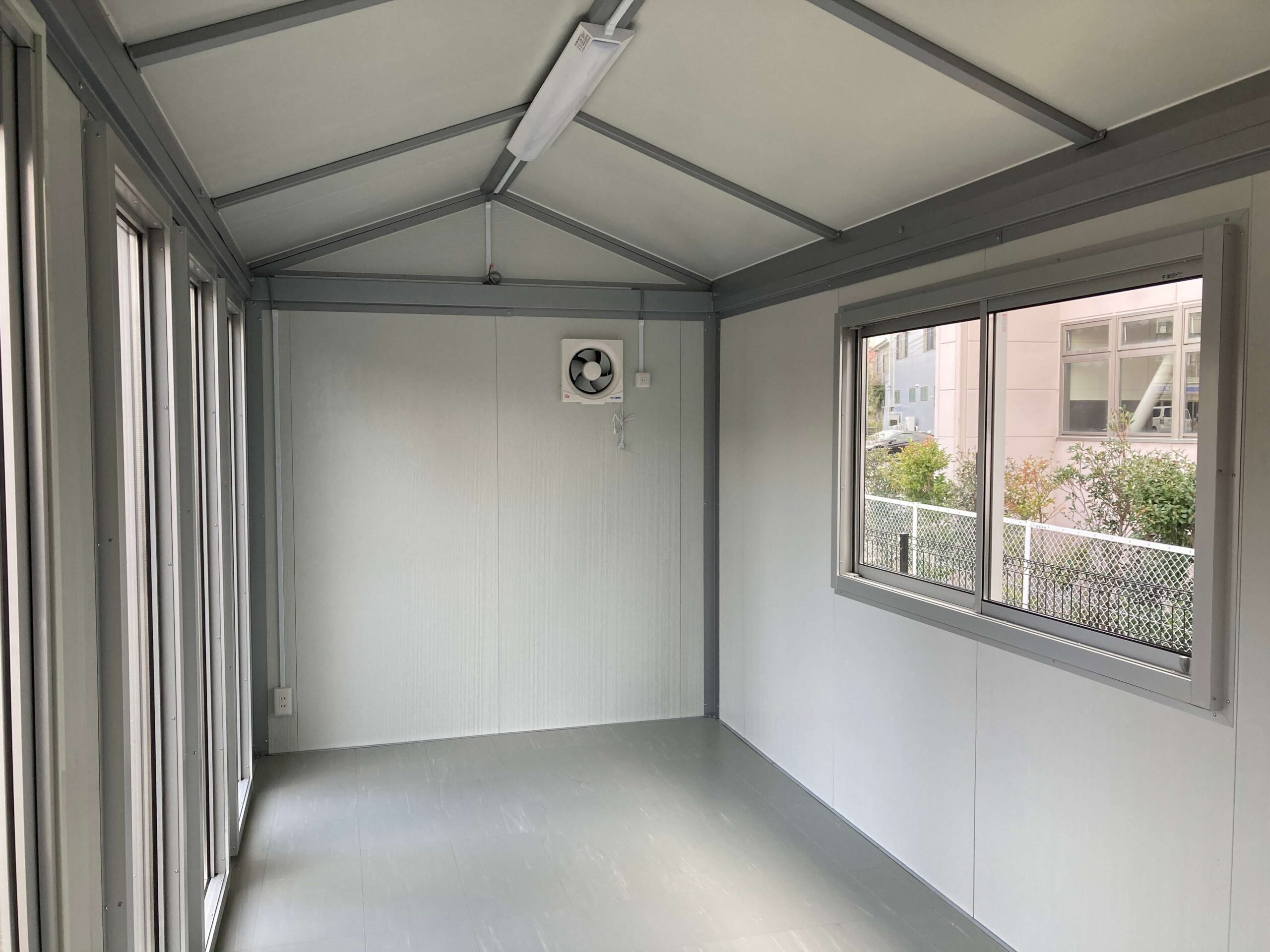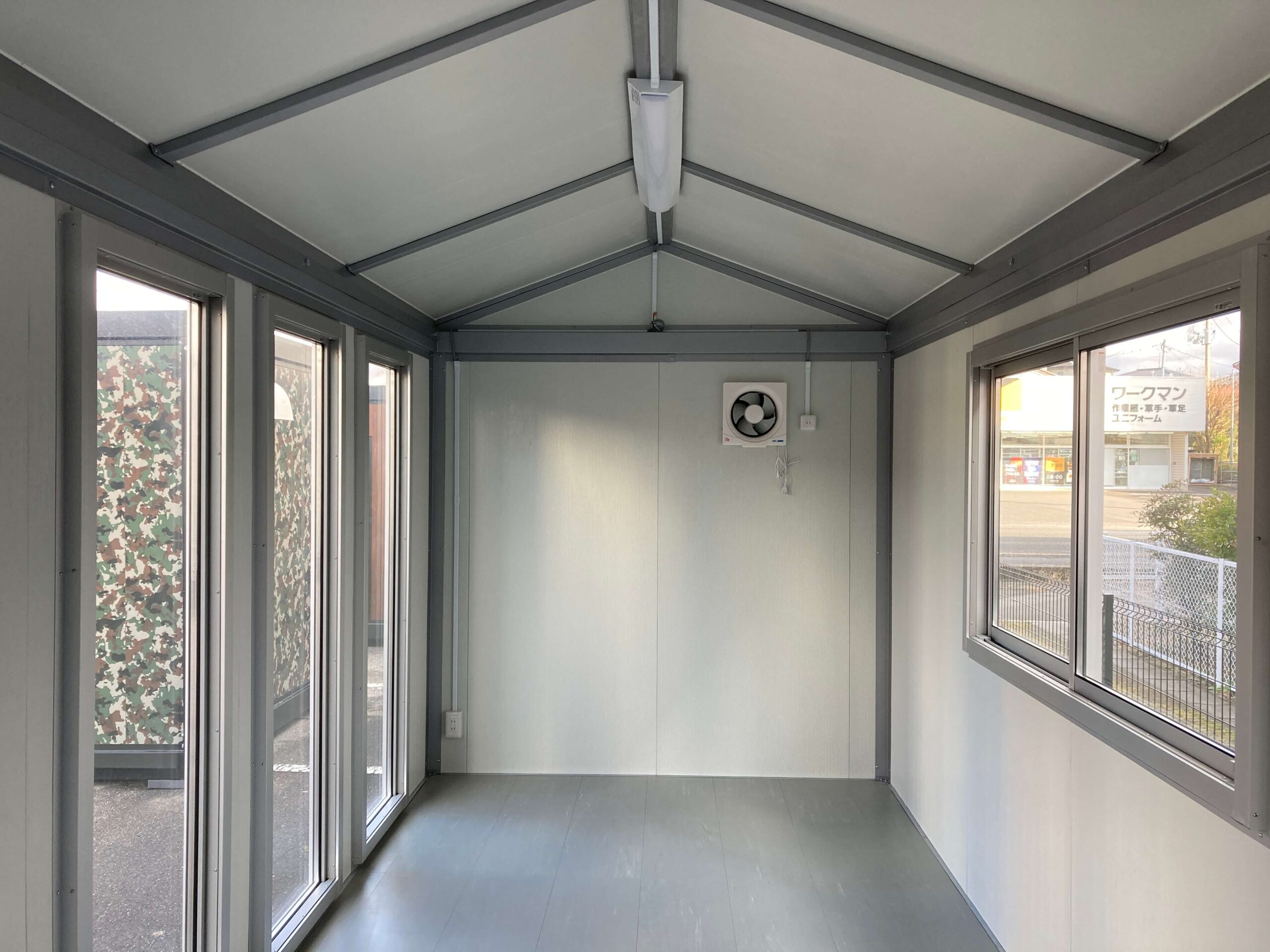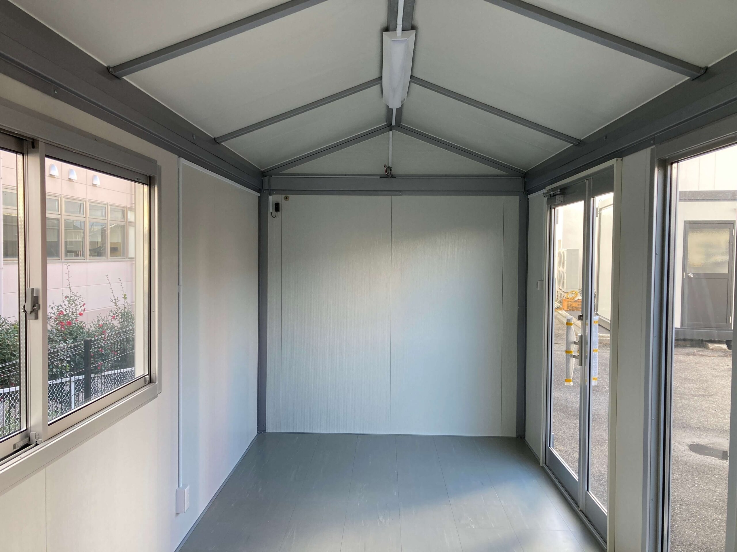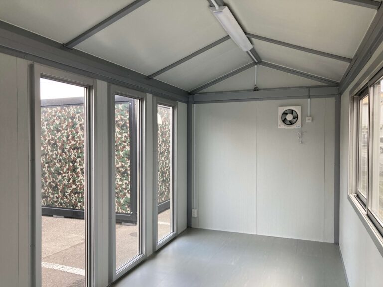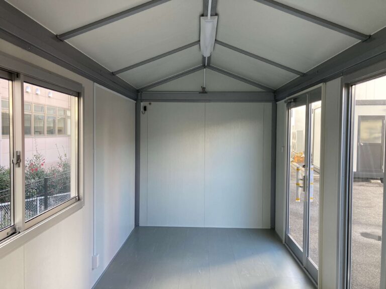 3.8坪(約7.6畳)の三角屋根仕様のプレハブユニットハウスが入荷しました。