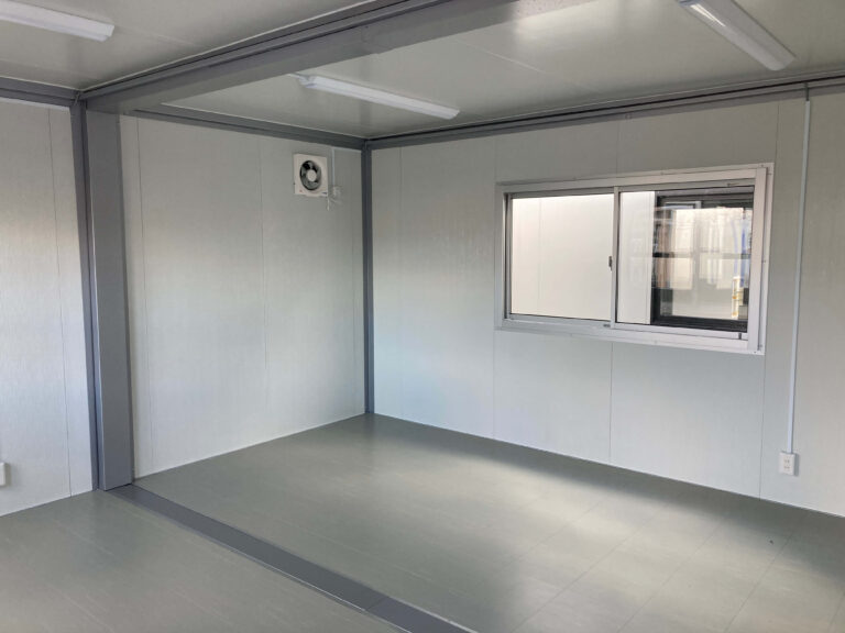 現場事務所や管理事務所など、日常的な事務作業にも適した一棟です。
