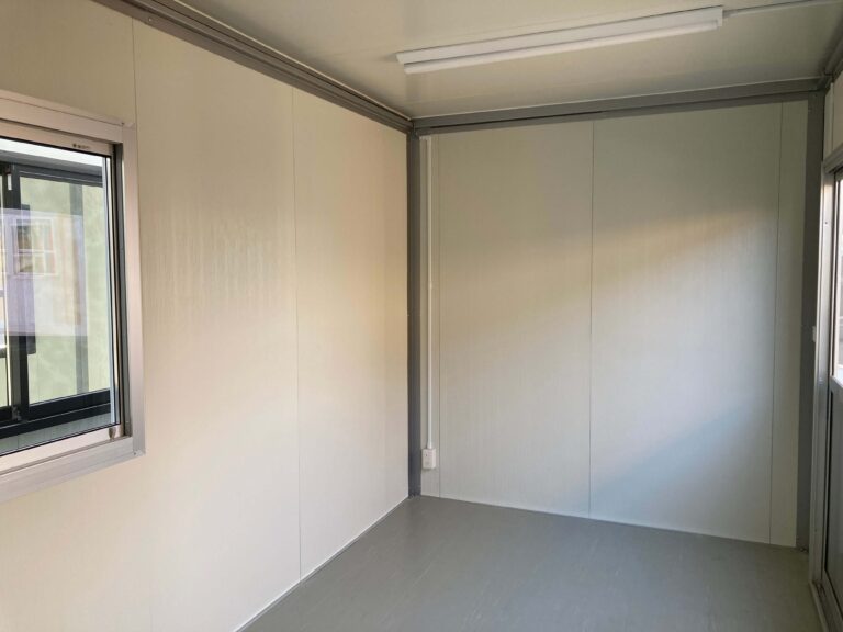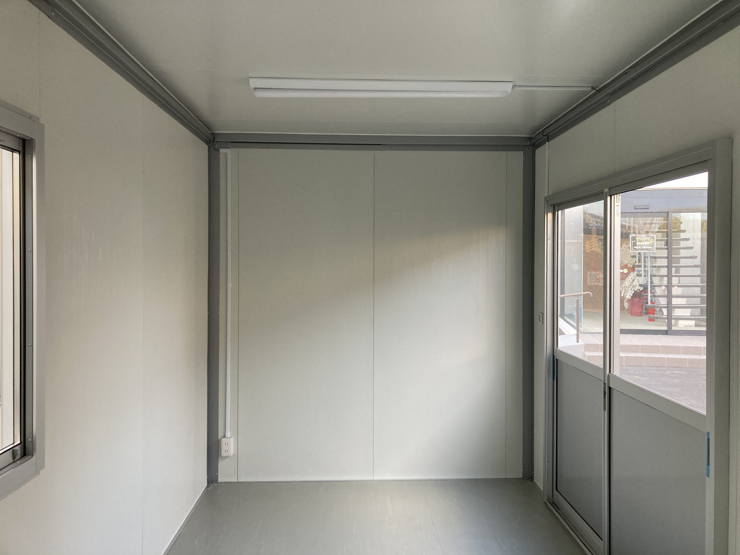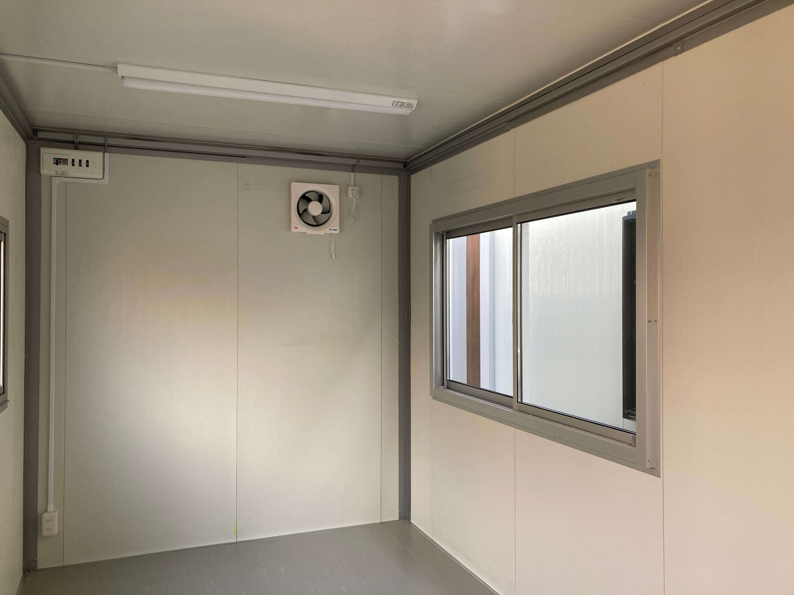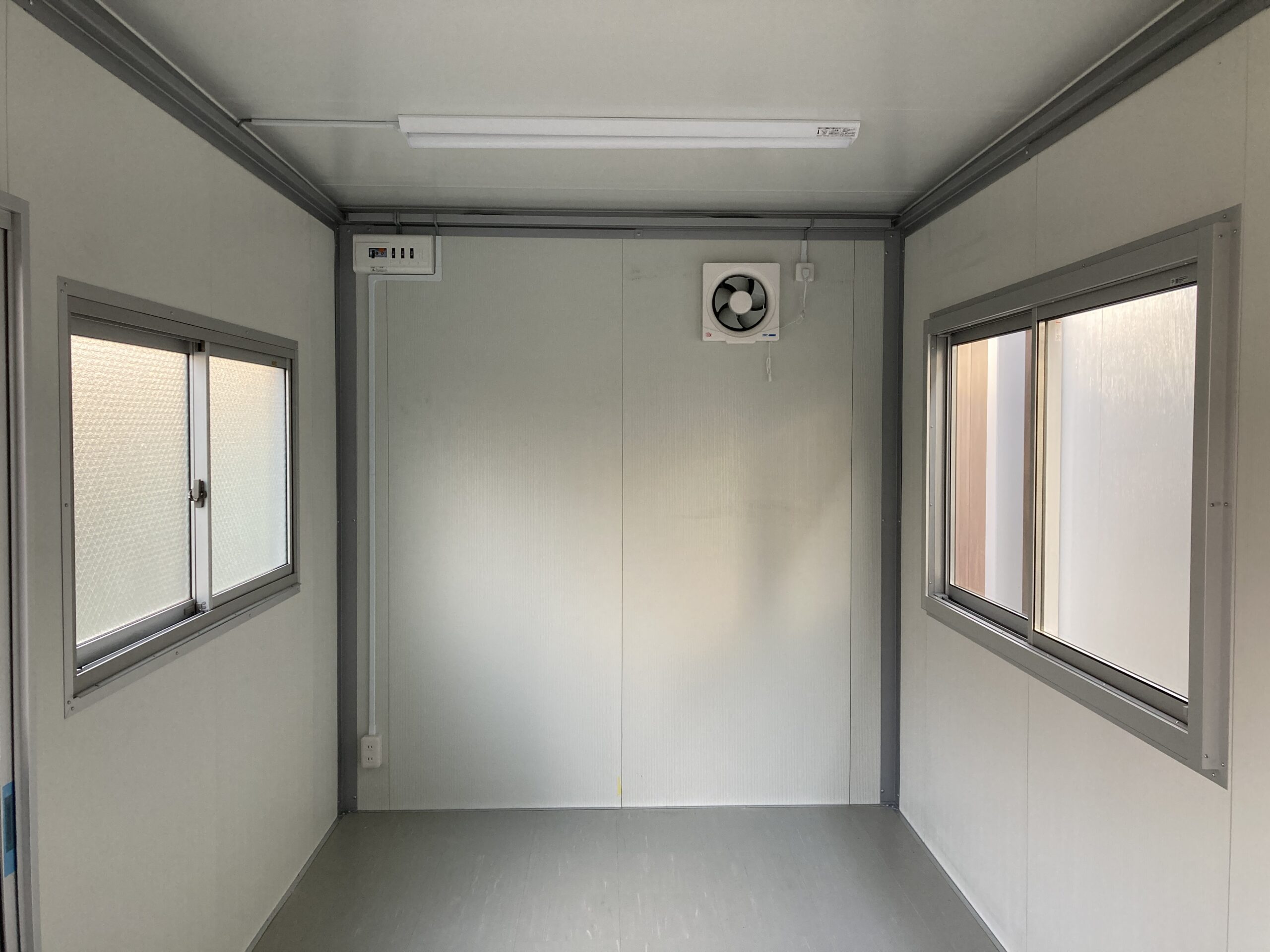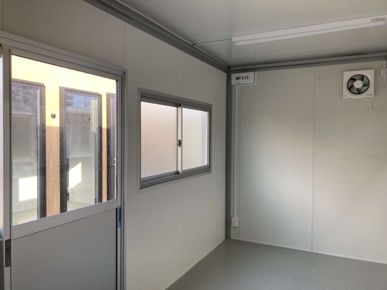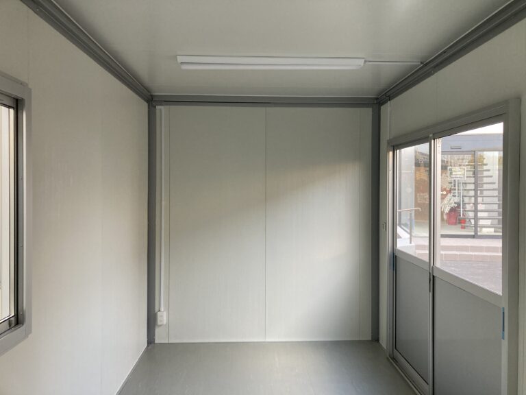 ブルーがベースの迷彩の壁が印象的な3.1坪のプレハブユニットが入荷しました。
