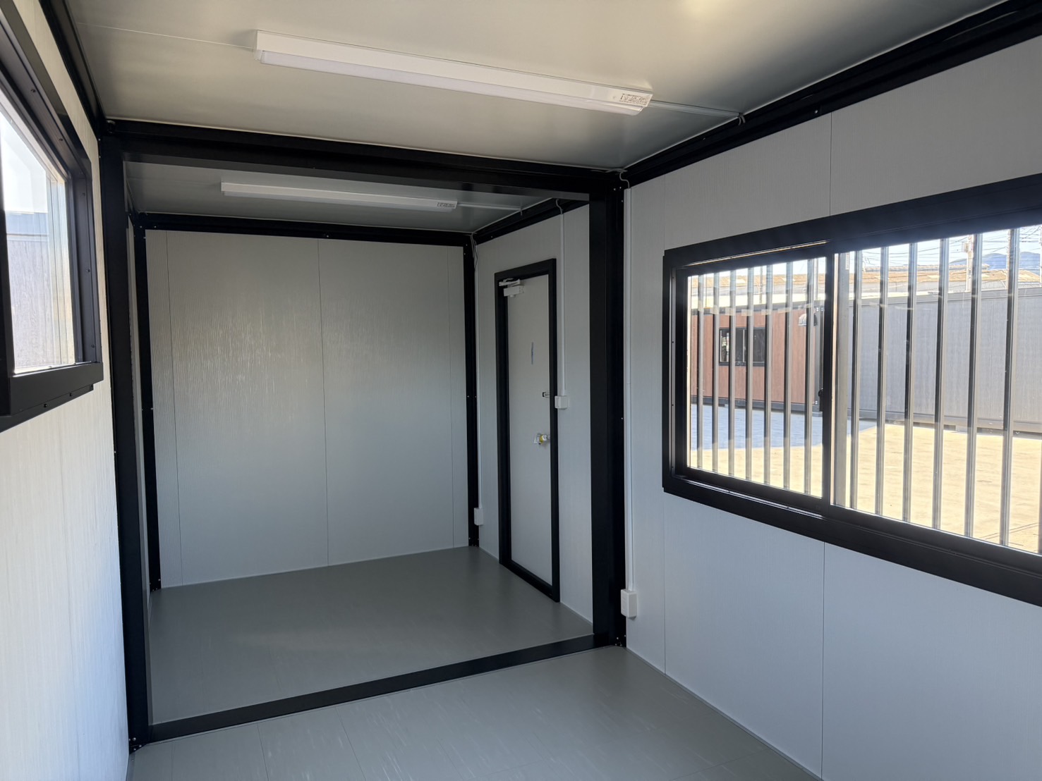 片開きドアで出入りしやすく、面格子付きの大窓があるため、明るさを確保しつつ防犯面にも配慮しています。