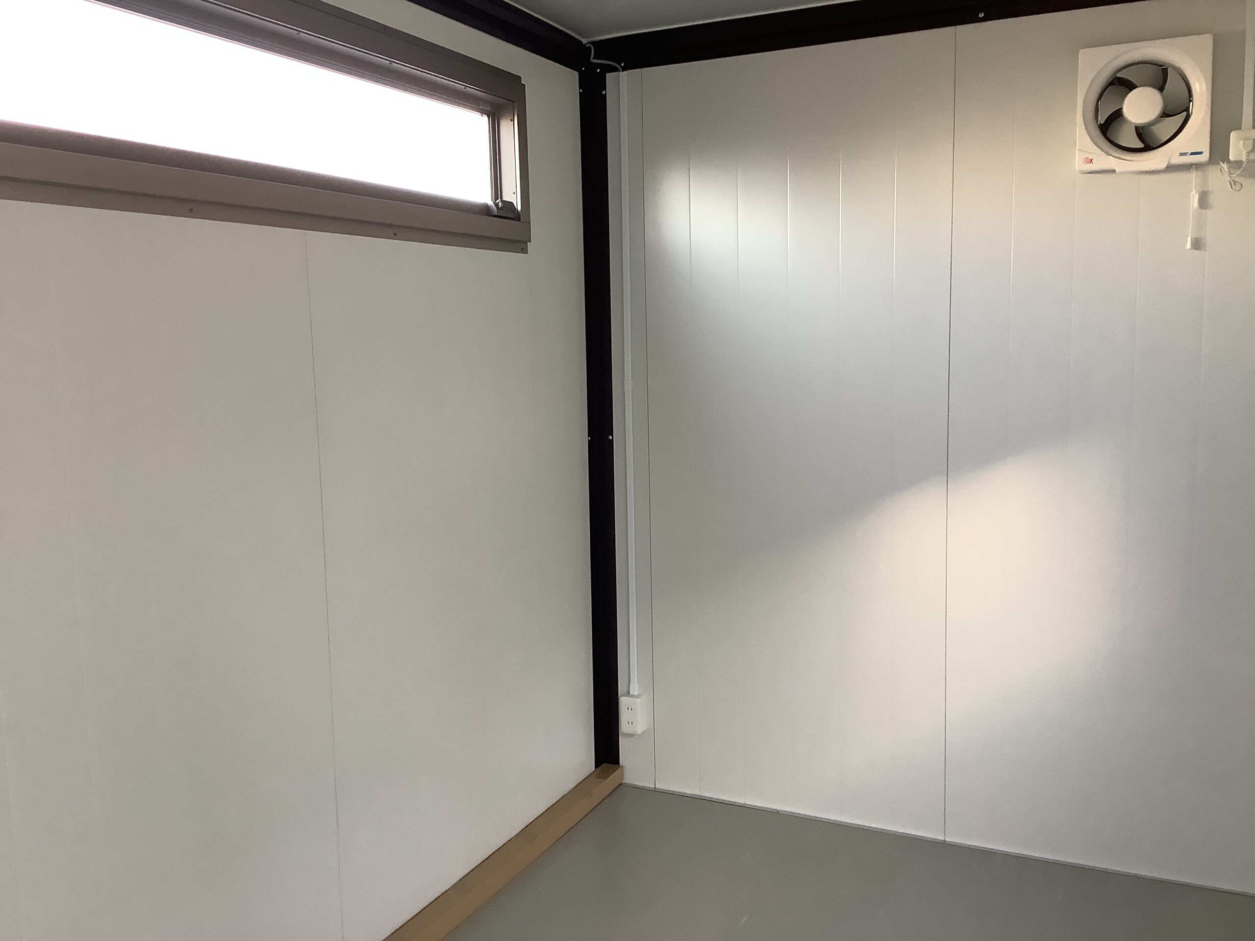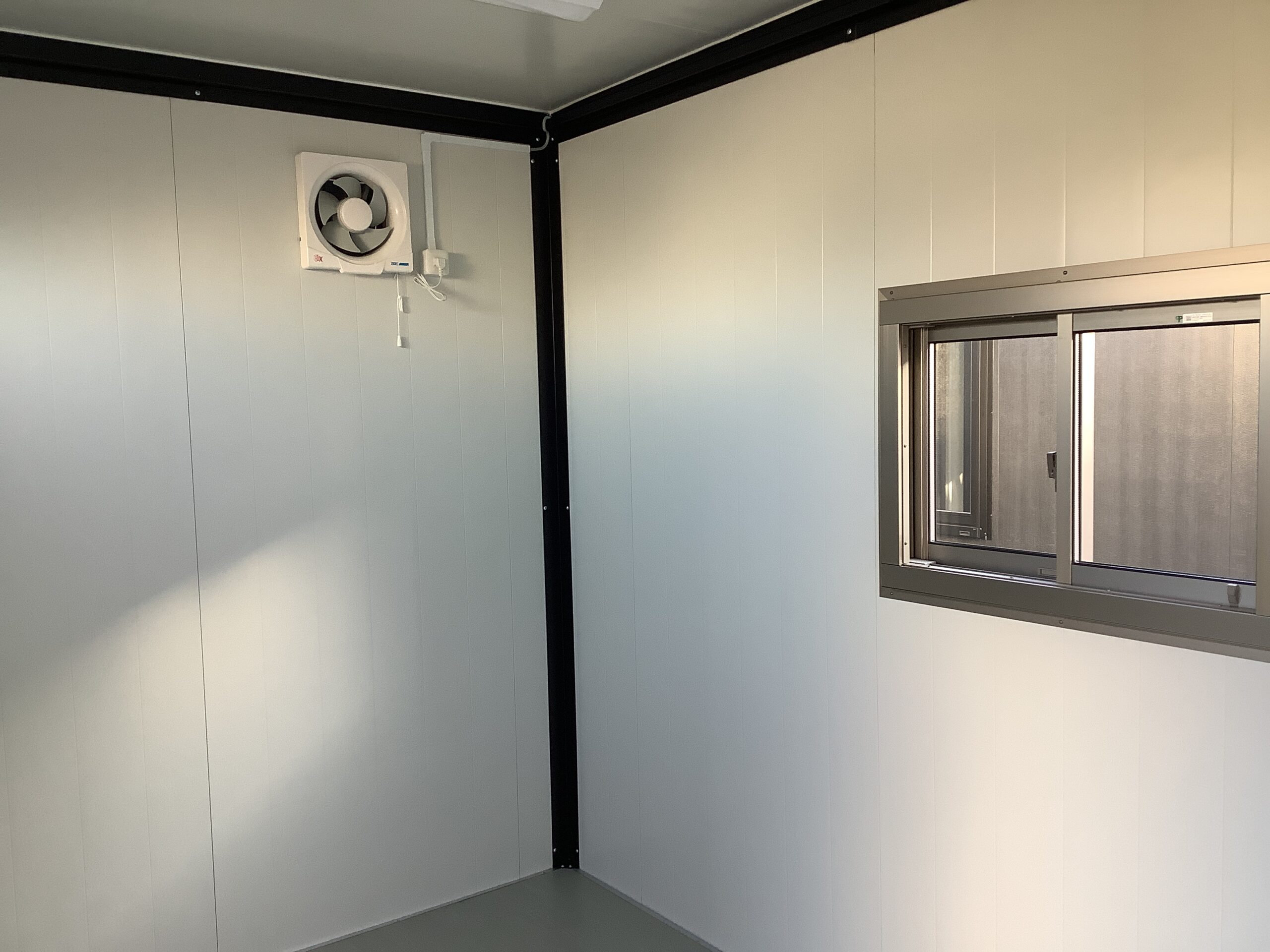 横すべり出し窓1枚と小窓、換気扇も備えており、採光と換気もしっかり確保。